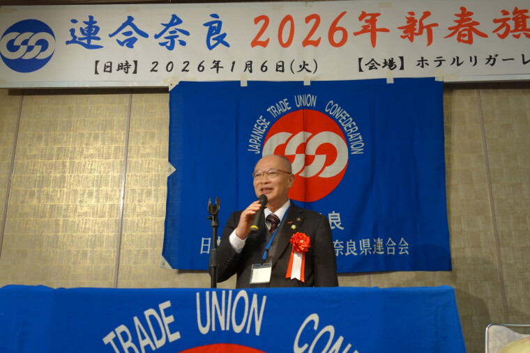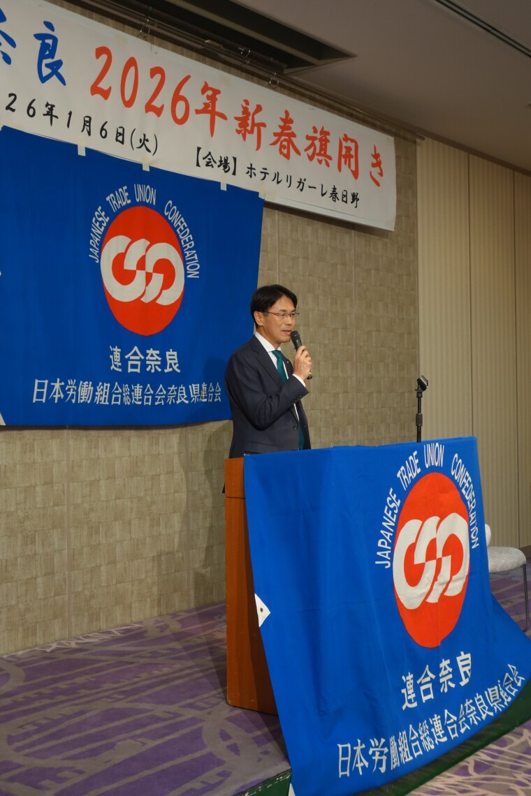 連合奈良は、2026年1月6日(火)18時~20時、ホテルリガーレ春日野 飛鳥の間に於いて「連合奈良2026新春旗開き」を開催した。